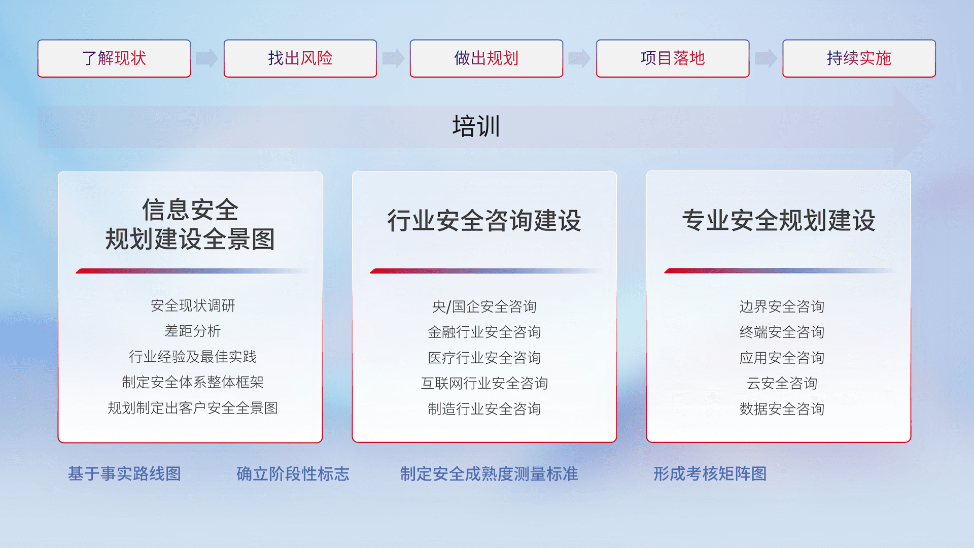 梳理客户信息安全现状调研、、、差距分析结果,,,,结合行业先进经验及最佳实践,,制订客户的信息安全管控体系总结架构,,,最终形成一个完整的客户信息安全规划与建设的全景图。。