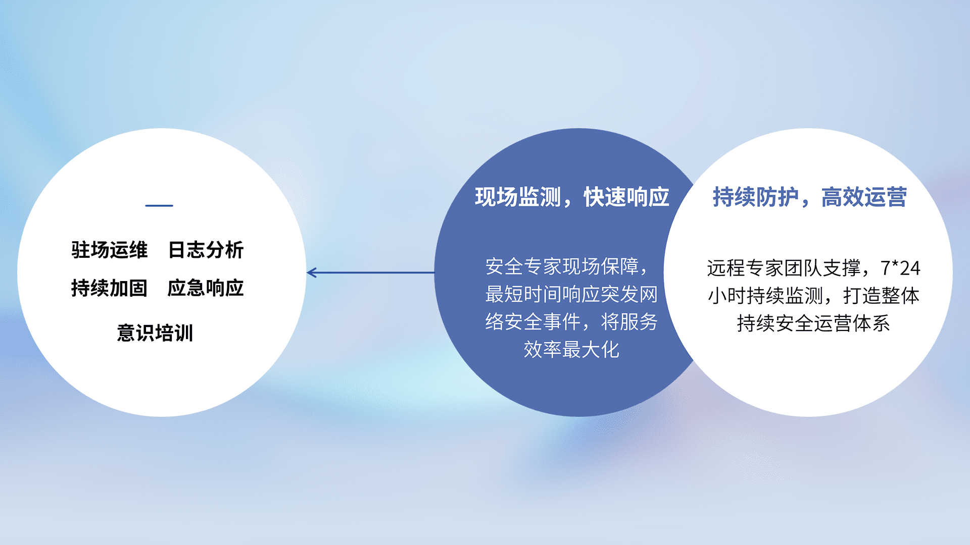针对客户行业特性,,提供专属的一站式安全管理服务,,,帮助客户全面感知网络空间威胁,,,,通过安全专家的线上、、、、线下防护支持,,,,实现风险闭环,,,将安全保障常态化,,为客户打造常态化安全运维运营服务。。。。